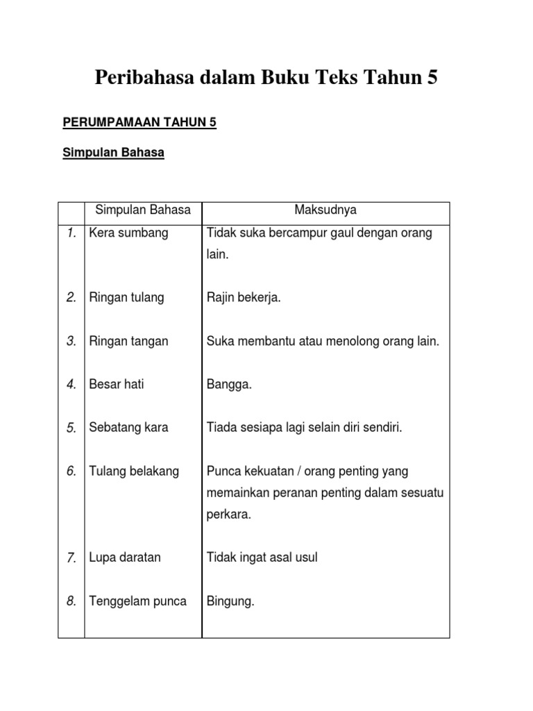Ujian pemahaman bahasa malaysia tahun 5 sjk mengikut format upsr 2016. Pak omar yang berumur lapan puluh tahun itu telah merasa asam garam hidup. Learn vocabulary, terms and more with flashcards, games and other study tools. Tuan rumah = penganjur sesuatu. Blog ini berkaitan dengan simpulan bahasa tahun 5.